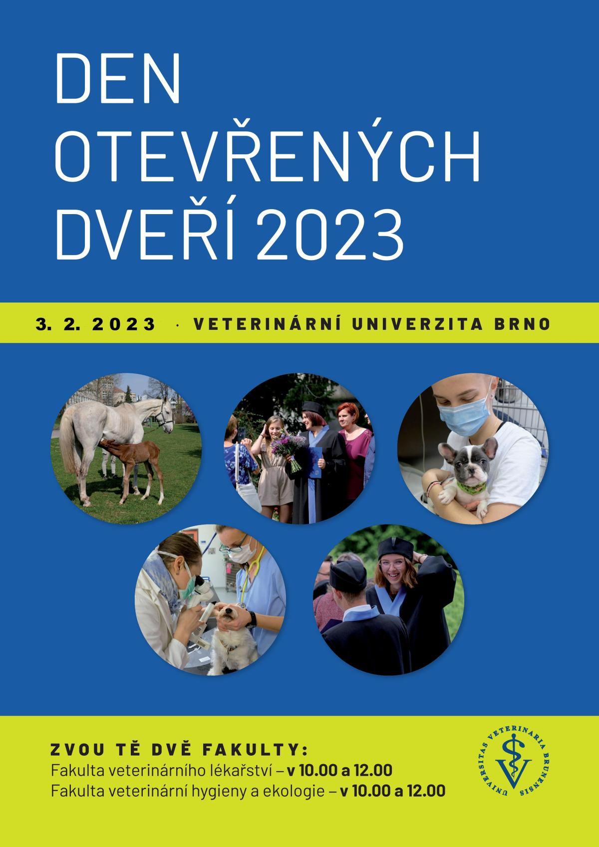 Den otevřených dveří na Veterinární univerzitě Brno se koná 3. února 2023 od 10 hodin a od 12 hodin. Zvou vás dvě fakulty: Fakulta veterinárního lékařství a Fakulta veterinární hygieny a ekologie.