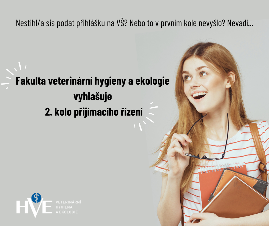 Vyhlašujeme 2. kolo přijímacího řízení do bakalářských studijních programů.Přihlášky do bakalářského studijního programu Zdraví živočichů a ochrana životního prostředí podávejte až do 15. 8. 2023.
